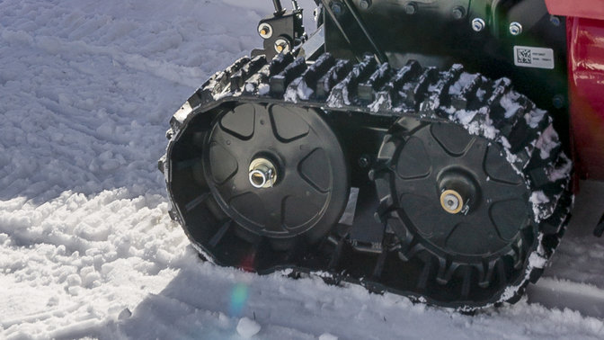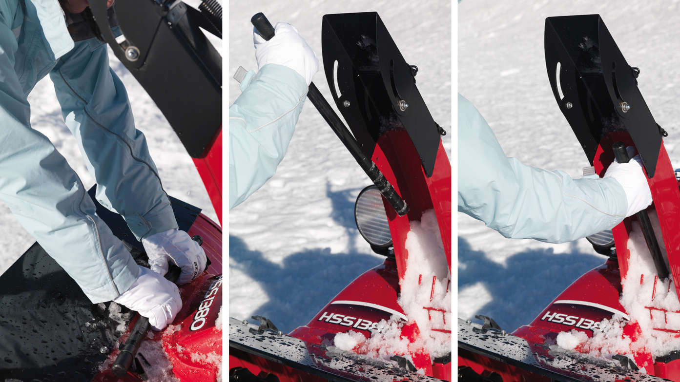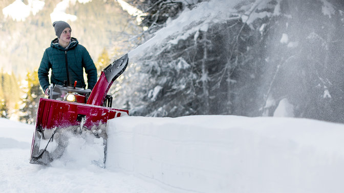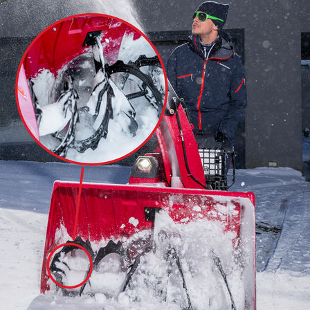 The angle of the top-mounted LED spotlight can be easily adjusted by hand. This (quite literally) brilliant feature on electric start machines provides ultra-clear visibility at night. It’s also useful when you’re storing your snowthrower in the garage after dark.